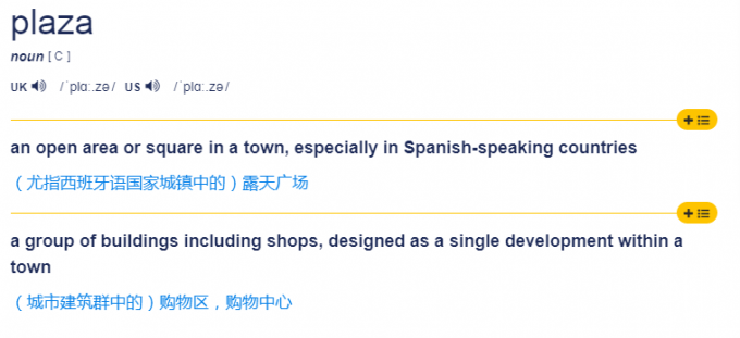 没错,这里的广场就是plaza,这个词既可以指城市中的那种露天广场,也可以指购物广场。
